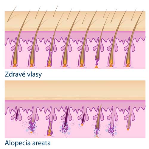 Bunky vlasových folikulov sa negatívnym vplyvom zmenia, imunitný systém ich posudzuje ako cudzie a začne ich ničiť. Preto sa alopecia areata označuje ako autoimunitné ochorenie. Biele krvinky nemilosrdne zaútočia na bunky vo vlasových folikuloch, vlasy prestanú rásť a vypadávajú.