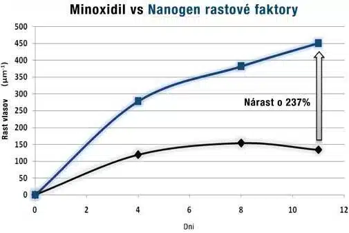 Účinky minoxidilu v porovnaní s účinkami Nanogen rastových faktorov.
