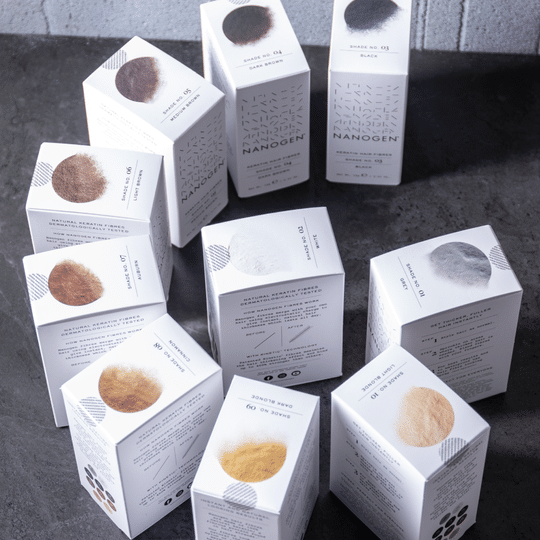 Áno sú. Nanogen vlákna sú vhodné pre všetky typy vlasov, tak ako pre afro-karibské vlasy, tak pre farbené alebo šedivé vlasy. Pokiaľ nosíte melír alebo vám vlasy zľahka šedivejú, môžete použiť kombináciu rôznych odtieňov a dosiahnuť tak váš prirodzený vzhľad.
