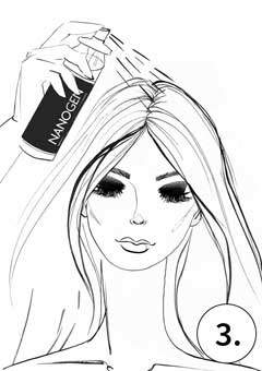Aplikuj Nanogen vodeodolný fixátor pre ešte silnejšie prichytenie Nanogen vlákien k vlasom a pre dosiahnutie vodeodolnosti.