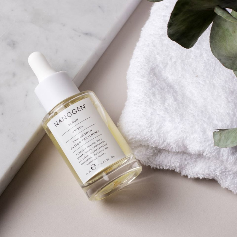 Sérum na rast vlasov Nanogen je ideálnym riešením pre všetkých, ktorých trápi vypadávanie vlasov, a je výsledkom viac ako 20 rokov vývoja a výskumu zameraného na podporu zdravého rastu vlasov a výživy pokožky hlavy.
